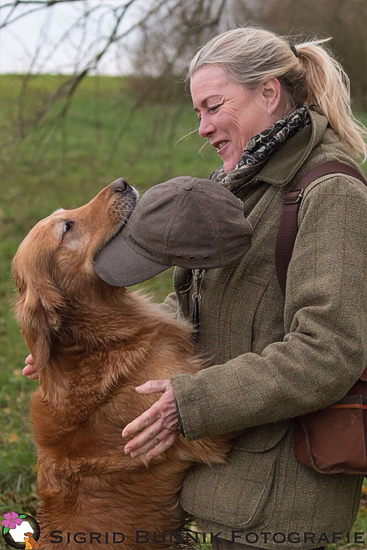 De details over moeder Vesta kunt u vinden op haar pagina. In het kort: gezondheid geen enkele bedenking, ogen voorlopig vrij beoordeeld. Een heerlijke hond. Prachtig gebouwd, heeft ook op shows al haar waarde bewezen qua bouw en beweging. Ze heeft een prachtige donkere vacht, net als haar moeder Bellefleur en haar oma Justine die beide ook bij ons wonen. Geweldige werkeigenschappen, heeft SJP-B-diploma’s gehaald, is slim en vindingrijk, erg zelfstandig werkend, maar kan ook heel goed luisteren naar de baas als dat in de training, op een examen of tijdens de jacht nodig is op dat moment. Wij zijn allen dol op haar (dat geldt ook voor haar roedelgenoten bij ons thuis) en zij is dol op ons allemaal. Momenteel, nu de pups het huis uit zijn, is de intensieve training weer hervat, door baasje Jan bij Cees Nijman (www.jachthondenschool.net) , waar ze ook getraind werd tot kort na de dekking.