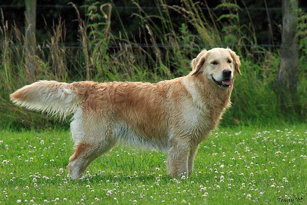 Dit tweede nest van Chérie uit 2006 hebben we destijds ook op type gefokt en daar zijn we zeker in geslaagd. Justine en al haar broers werken samen met hun baasjes (jachttraining) en een broer van haar heeft al in 2007 een KNJV-B-diploma gehaald en was ookt Golden Retriever van de maand december 2007 op de website van de GRCN. En in de showring hebben Justine en haar broers ook hun waarde bewezen!